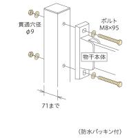腰壁用ホスクリーンや窓壁用ホスクリーンに対応するパーツでアルミ支柱への取付けに使用するM8×95のボルトナットです。