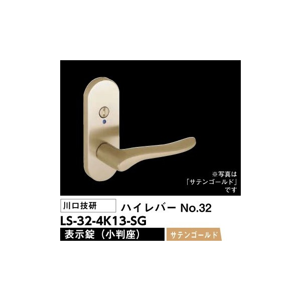 川口技研 レバーハンドル錠 LS-32-4K13-SG(No.32ハイレバー小判座表示錠サテンゴールド)LSミニケース錠仕様バックセット51mm