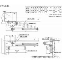 P-182はストップ付(ストップ角度は70度〜180度迄の任意に設定可能)、パラレル型(内付け・外開き用)