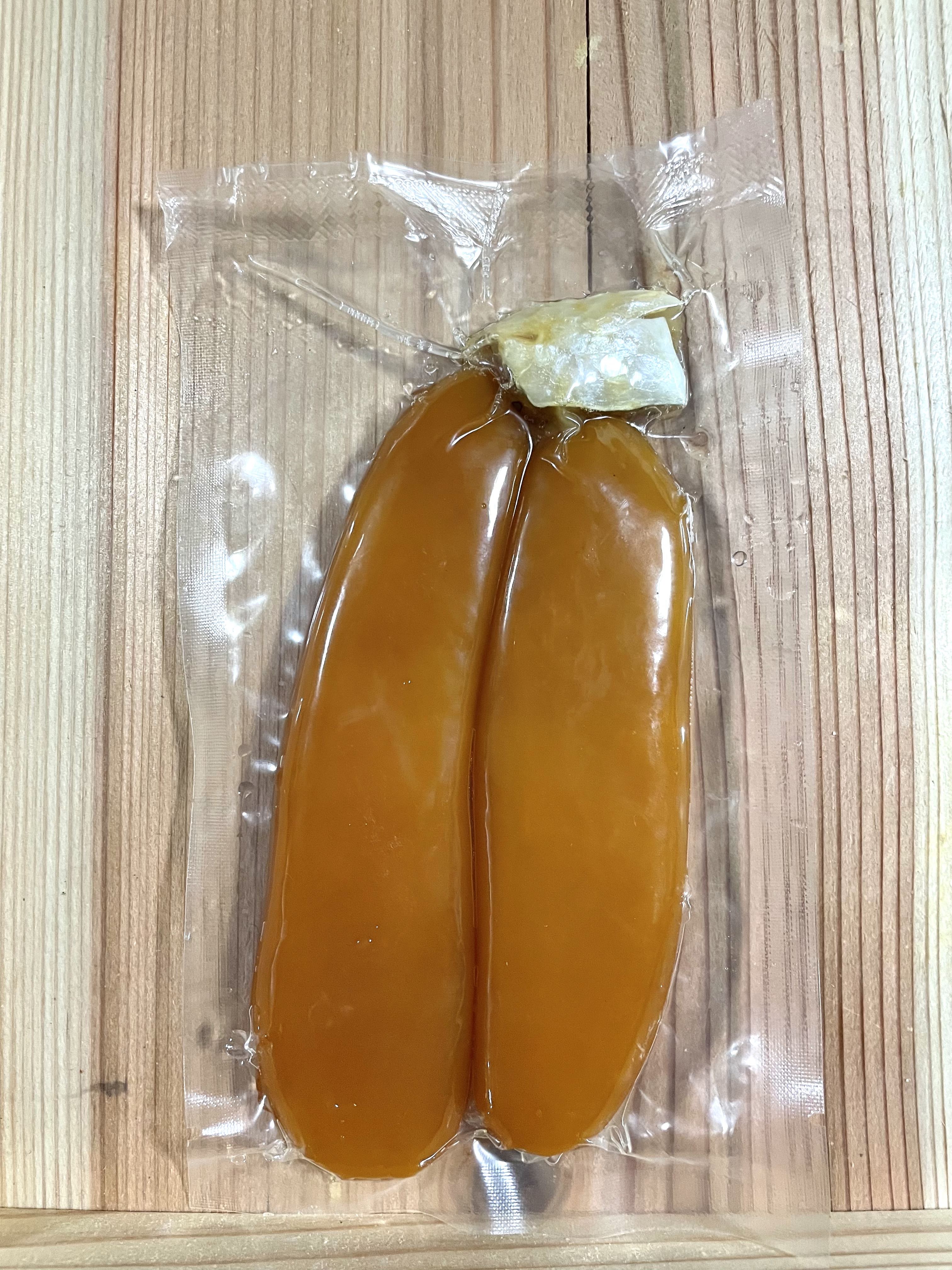 塩と焼酎、酒以外は使用されておらず、着色料や保存料などの化学調味料は使用されていない無添加、無着色の本からすみです。
