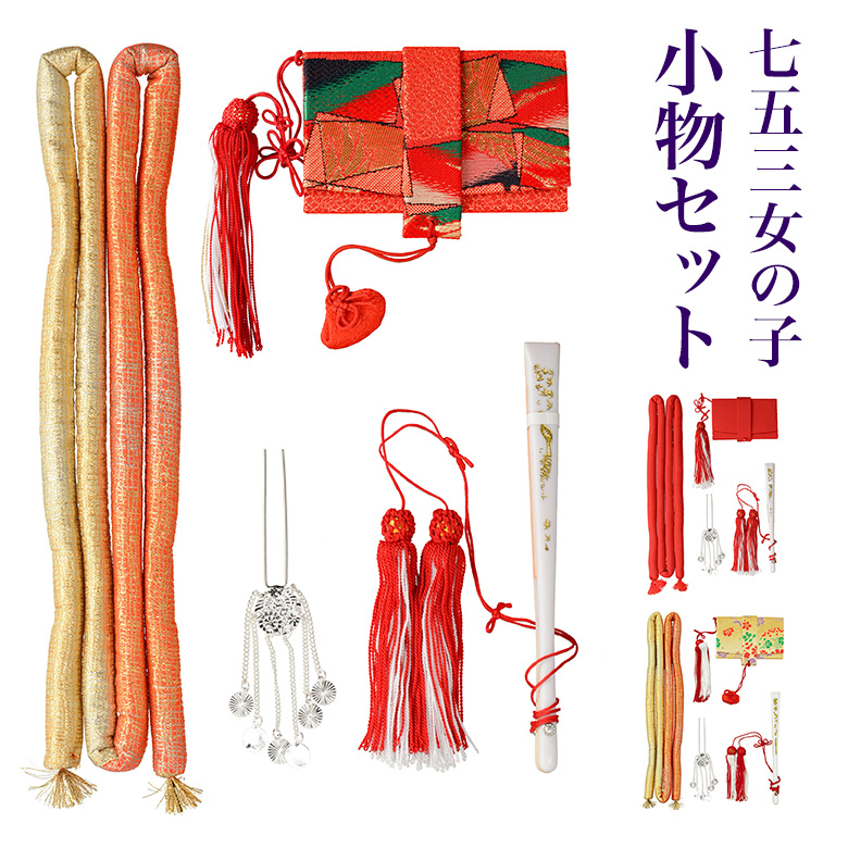 女の子の着物スタイルにおすすめの七五三小物セットです。厚みの薄い簡易箱迫を採用しているので胸元に差し込んだ時のお子様の負担も軽減。