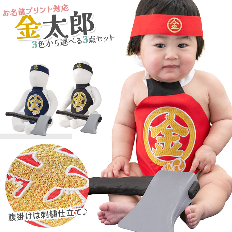 | 100日〜2才児用サイズの昔話「金太郎」のコスプレ衣裳です。 「力持ちで優しい子」に育って欲しい・・・そんな願いをこめてお子様に着せてあげてください。 はちまき・腹かけ・まさかりの3点セットです。 腹かけは首と腰の後ろの部分に紐が付いております。(※2016年2月より後ろ紐の仕様が変更となっております。) はちまきは後ろが面ファスナーになっているので簡単に留められ、さらにゴム付きなのでお子様の頭にフィットします♪初節句・端午の節句のお祝いに、お子様の成長の記念にかわいい衣裳で記念撮影してみてはいかがでしょうか。 ◆撮影のポイント! 撮影時は腹かけでおむつを隠すようにするときれいに撮影ができます♪ 皆様から寄せられた可愛い金太郎さん姿をお客様写真館よりご覧いただけます。 おむつがちょっぴり見えても成長の記録として思い出深いものですね。ぜひ素敵な写真にトライしてみてくださいね♪ |