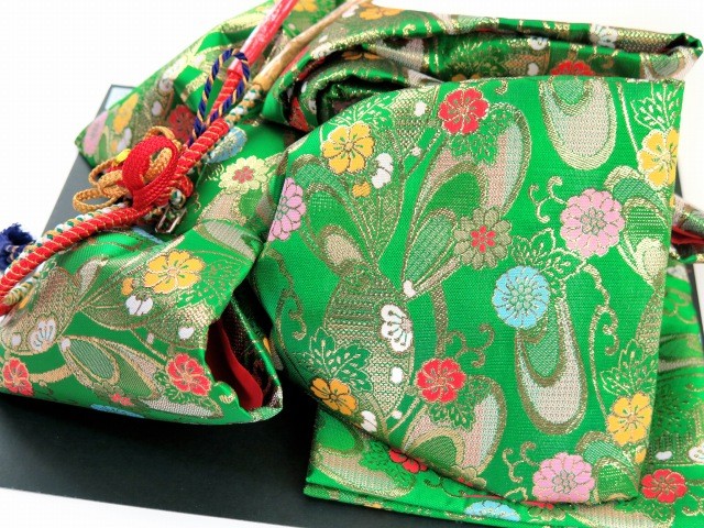 | 商品説明 | 7歳女の子用の金襴生地の結び帯(大寸)です。 七五三やお正月などの晴れ着に合わせていかがですか |