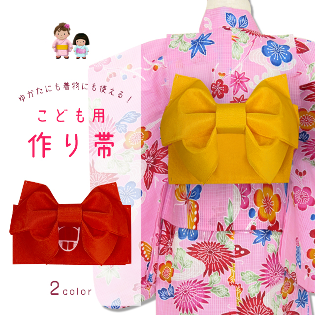 | 商品説明 | シンプルな無地の子供用の作り帯です。 帯の部分を巻いて、結びの部分を差し込むだけの帯ですので、とても簡単に結ぶことができます。 浴衣以外に子供着物アンサンブルにもおススメです。 |