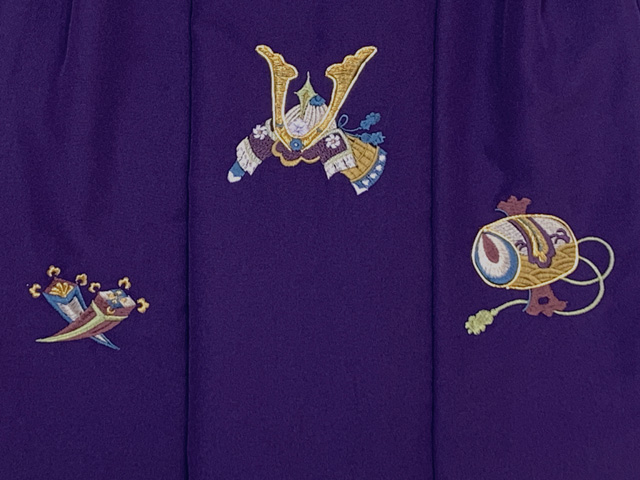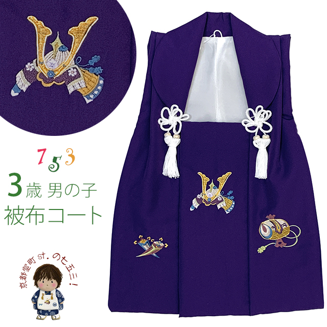 京都室町st. 被布 単品 七五三 3歳 男の子 刺繍入り 被布コート 被布着 合繊「紫、兜と小槌」ibh501