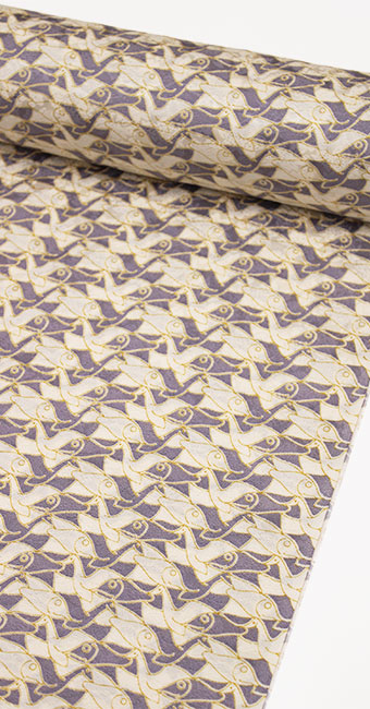 エッシャーの魚のだまし絵を反物全体染め上げた、小紋友禅です。