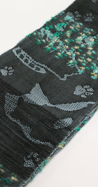 両面とも同じ織り柄で、帯の真ん中でデザインが分かれています。