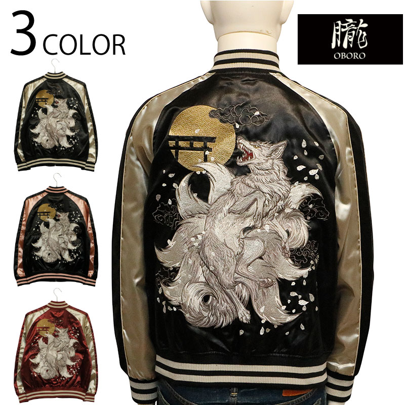 朧 おぼろ 妖狐 九尾の狐 柄 刺繍 和柄 スカジャン 9051811 和柄 スカジャン ポリエステル サテン アウター 軽量アウター 妖怪 妖狐 九尾 狐 定番柄 総刺繍