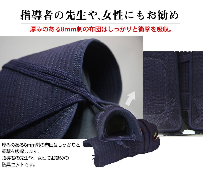 | 剣道防具セット内容 | 面×1個、胴×1台、甲手1組、垂×1枚、 面紐、胴紐、面乳革、胴乳革は取り付けて発送、面手拭×1枚 |