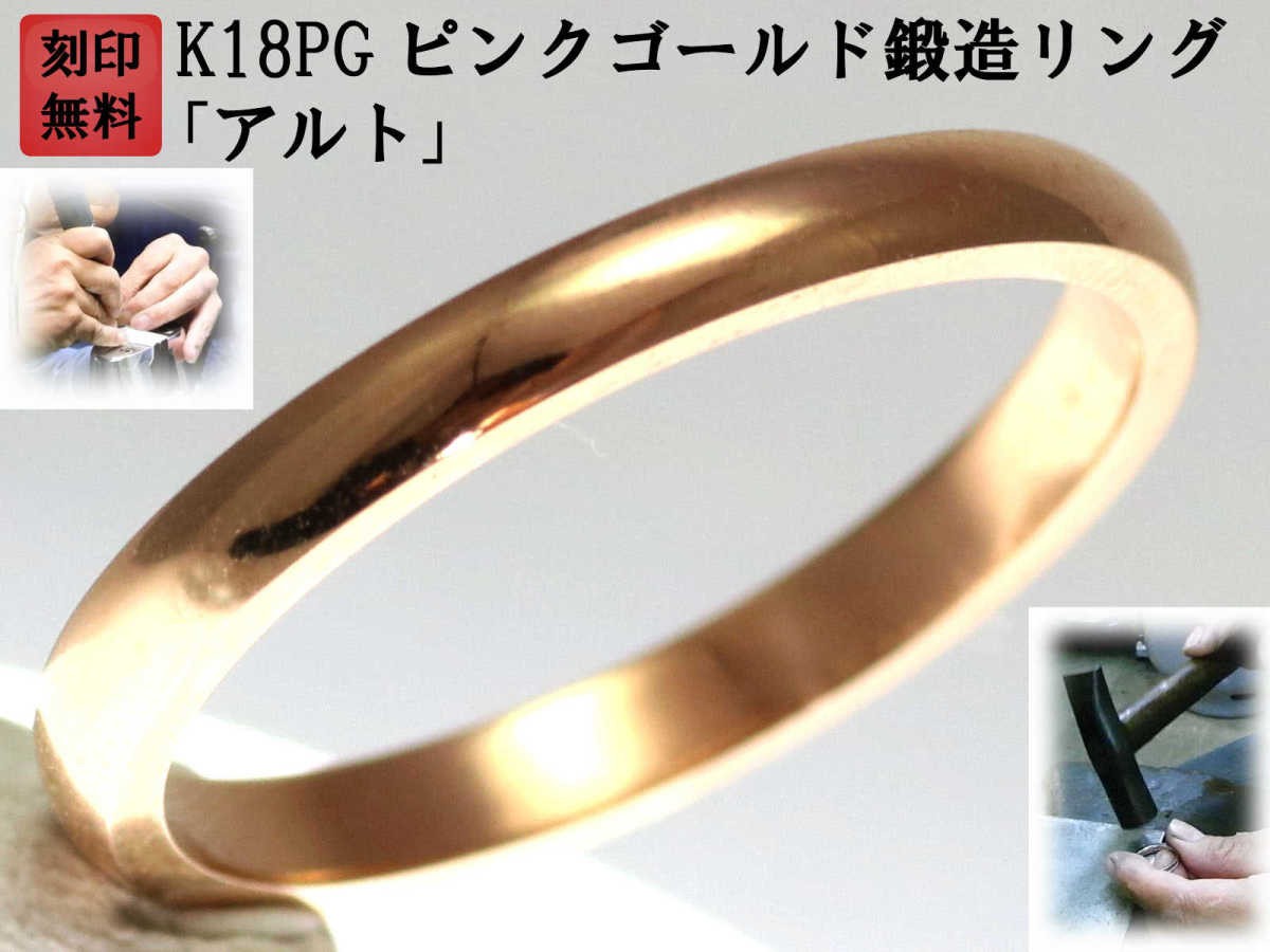 結婚指輪 マリッジリング ピンクゴールド K18 18金 ゴールド ペアリング 用 18k PG 鍛造 甲丸 結婚 指輪 ブライダルリング 刻印無料 リング レディース メンズ 両用【増税応援セール】「アルト」