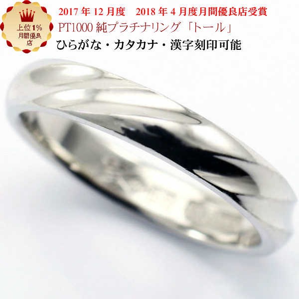素材は「プラチナ1000」(pt999)を使用し、幅約3.6mmのリングです。リングの表面は磨きぬかれた光沢仕上げ。全周にウェーブ状の模様が施されておりますので、光の反射が美しく、プラチナの魅力を存分にお楽しみ頂けます。長くご愛用頂けるシンプルなデザインです。