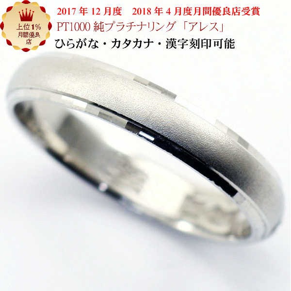 素材は「プラチナ1000」(pt999)を使用し、幅約3.3mmの甲丸デザインのリングです。リングの表面はマットなつや消し仕上げ。両サイドに細かなカットのラインが入っており、キラキラと輝きます。落ち着いたつや消し部分とのコントラストも美しく、とても上品なデザインです。また、シンプルなので永くご愛用頂けます。