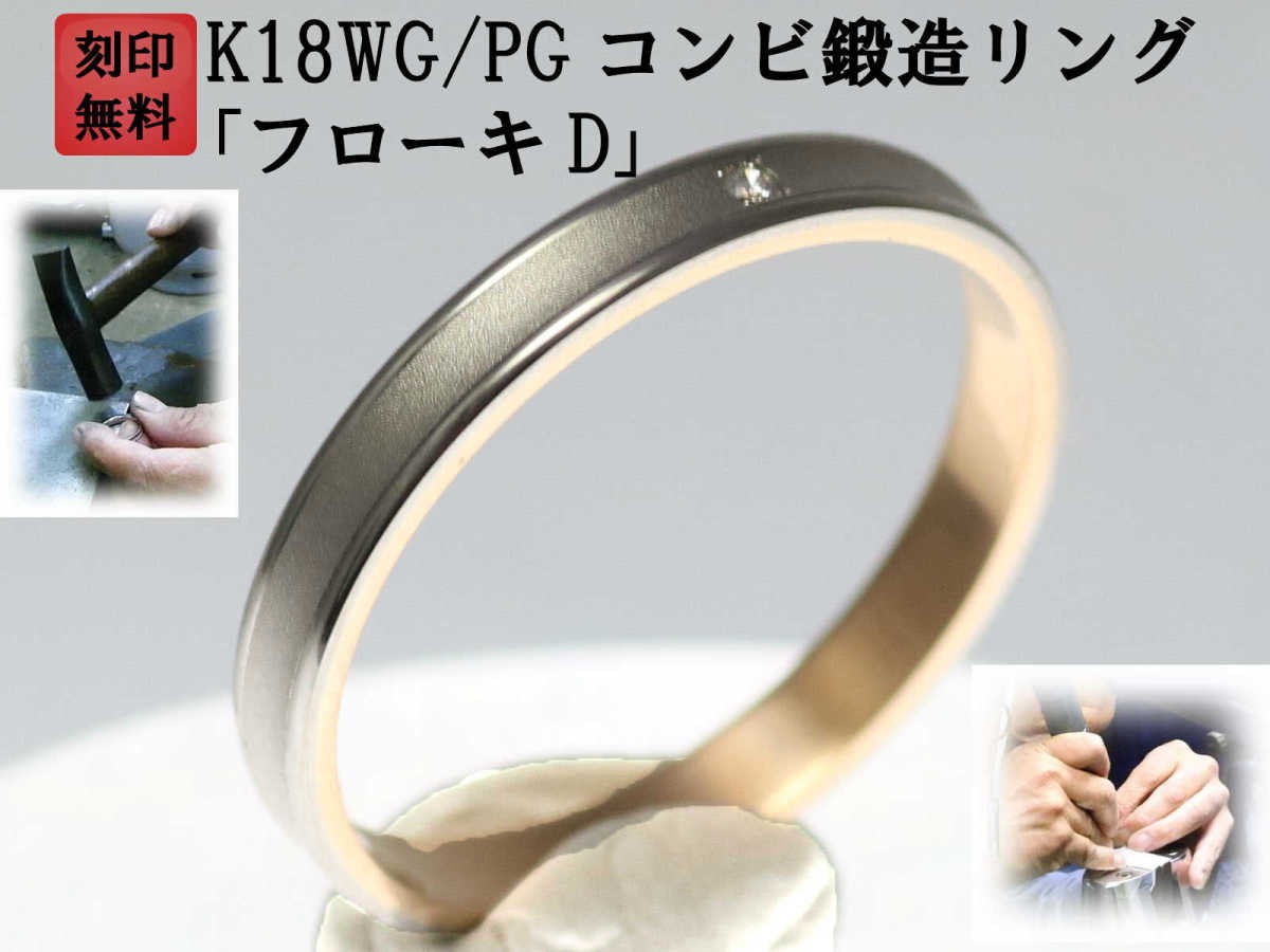 結婚指輪 マリッジリング ペア リング 用 Marriage ring K18 ホワイトゴールド WG 18金 ピンクゴールド PG コンビリング 鍛造 平打ち 結婚 指輪 ブライダルリング コンビ リング レディース ダイヤ ダイヤモンド 【増税応援セール】 「フローキD」