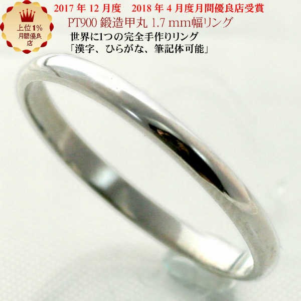 結婚指輪 マリッジリング 1.7mm幅 甲丸 プラチナ pt900 リング ブライダルリング シンプル 手作り ハンドメイド PT900 プラチナ リング 甲丸 ペアリング 用に