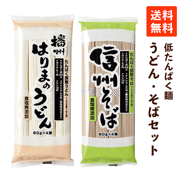| セット内容 | ・たんぱく調整播州はりまのうどん(320g) 1袋 ・たんぱく調整信州そば(320g) 1袋 各1袋ずつ |
