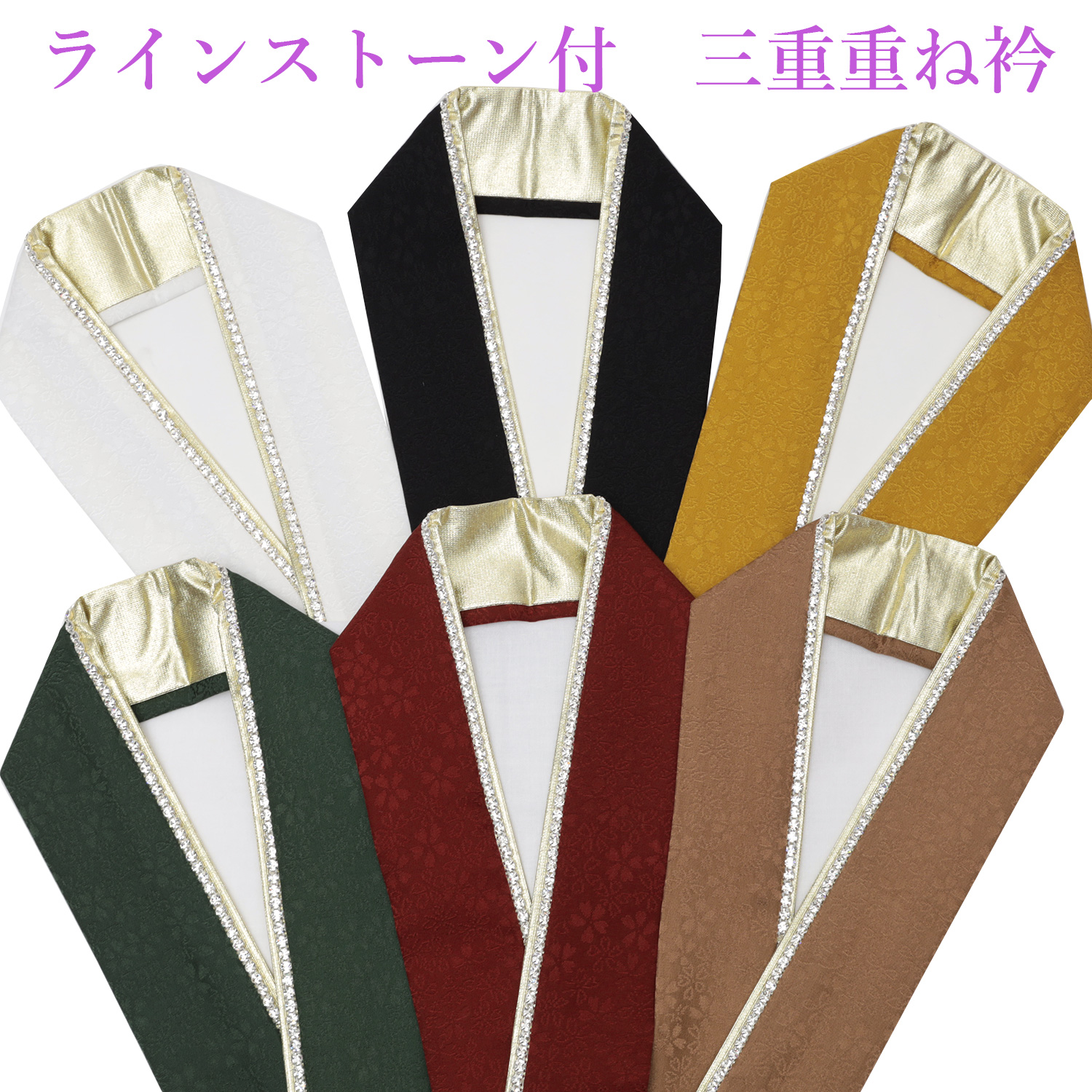 ラインストーン付 重ね衿 振袖 袴 成人式 卒業式 重ね襟 伊達襟 付け襟 えんじ カラシ 深緑 茶色 黒 白 着物 和服 和装 伊達襟 絹 お洒落 かわいい