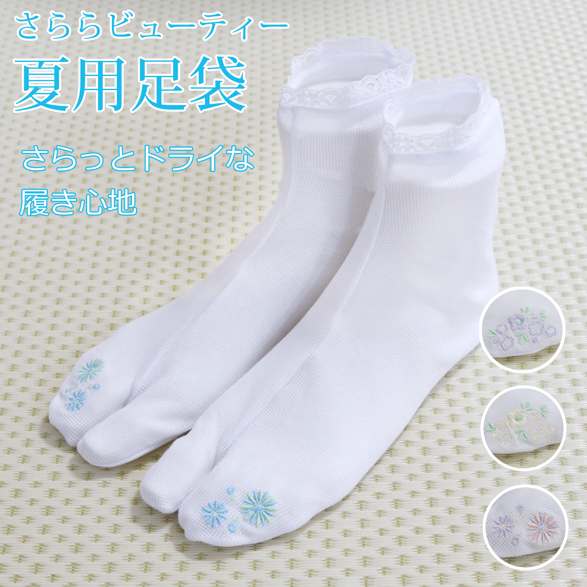 足袋 夏用 レディース 刺繍 レース付き 単衣 夏 東レ さららビューティー 白足袋 ストレッチ足袋 女性用 伸びる足袋 履きやすい足袋 足袋ソックス