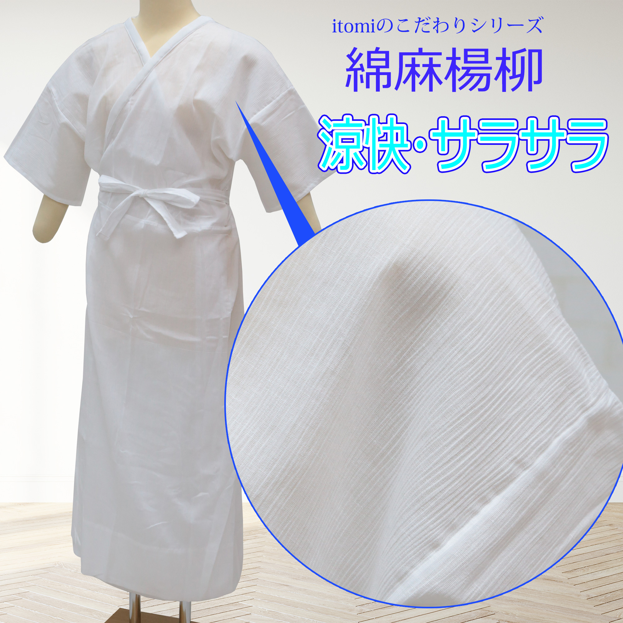 itomi 真夏の着物スリップ 綿麻楊柳 夏用 肌着 和装下着 夏 涼しい 防臭 抗菌 浴衣 着物用 下着 和装スリップ ワンピース レディース 女性用 井登美 イトミ