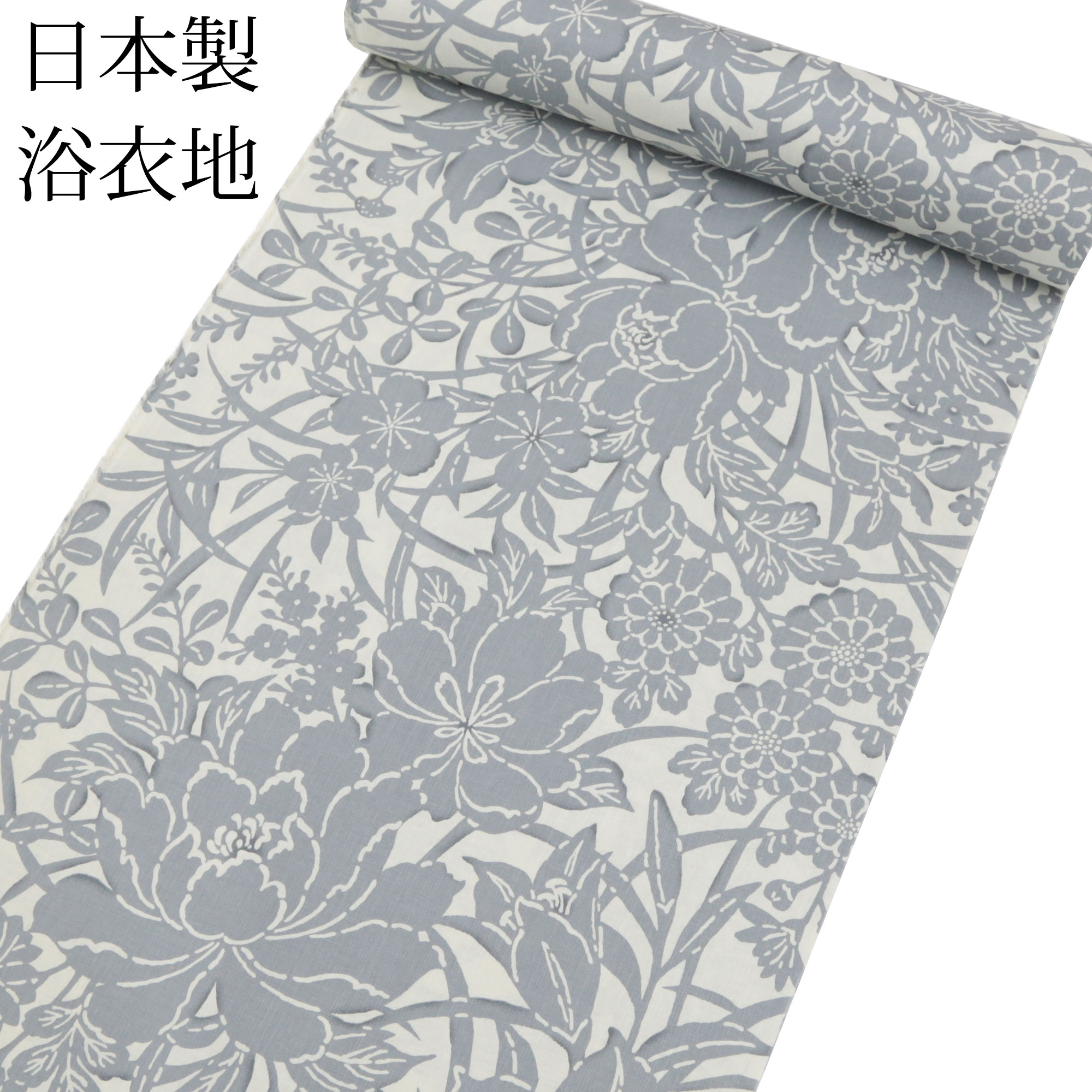 浴衣 反物 生地 日本製 教材用 レディース 生成り 薄墨色 灰 ライトグレー 花 女性用 ゆかた 綿100 ゆかた地 着物風 誂え 仕立て オーダーメイド yukata