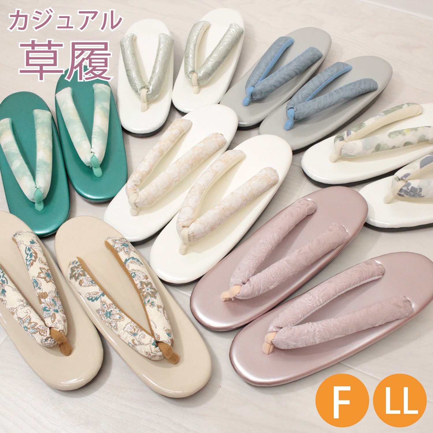 ※草履は履いた時に少しかかとがはみ出る(1cmくらい)が丁度良い美しい履き姿と言われています。履き姿の好みには個人差がありますが、ある程度その範囲を目安に適応サイズを表示させていただいております。