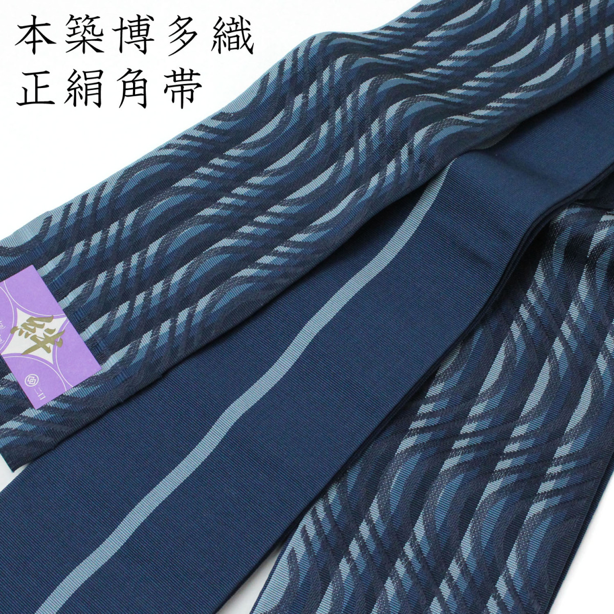 角帯 かくおび 博多織 本場筑前博多織 男帯 浴衣帯 メンズ 青 ブルー 紺 ネイビー リバーシブル 両面使える 日本製 高級 男性用 着物 浴衣 父の日