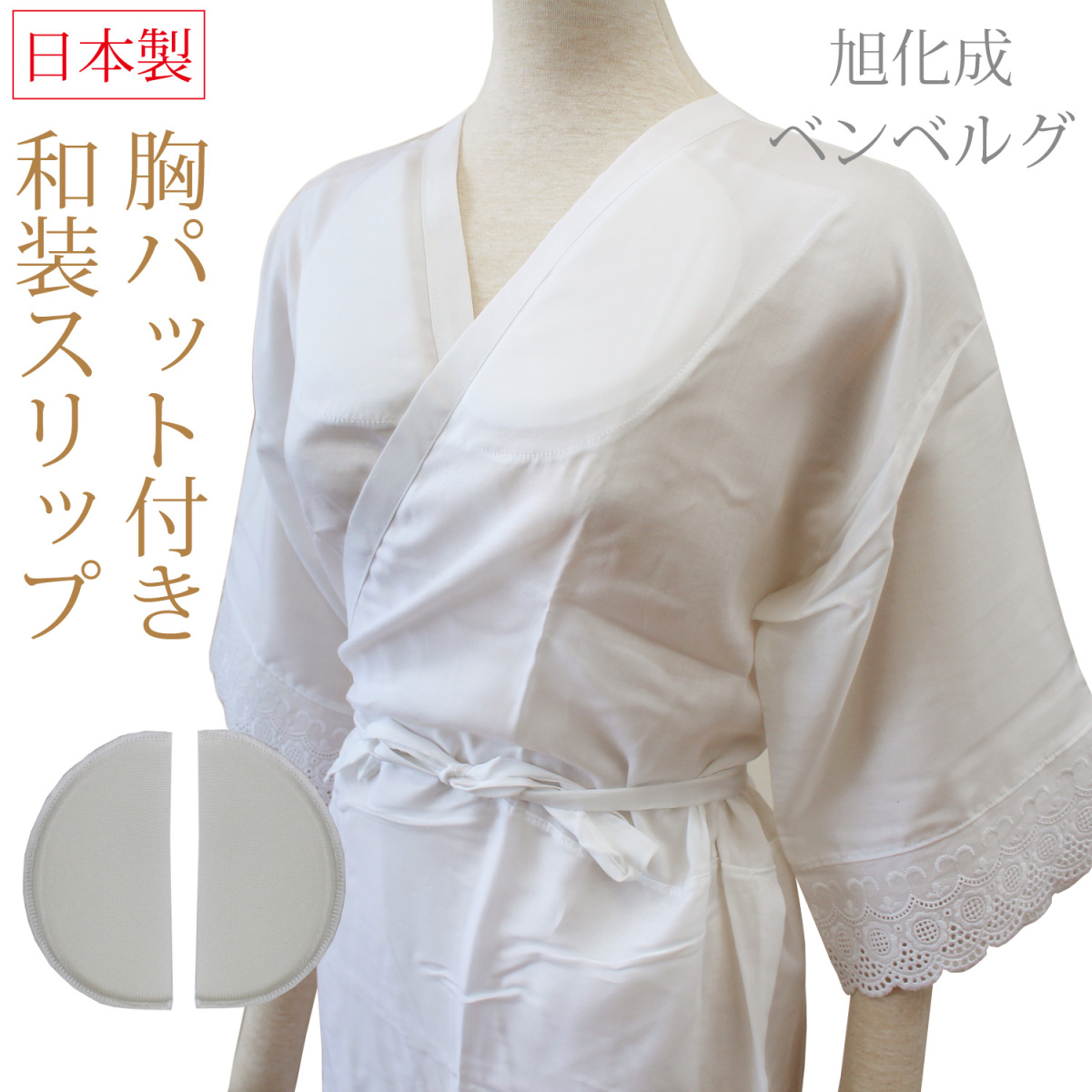 着物の衿元がシワなく綺麗に 着物スリップ パット付き 和装スリップ 旭化成 ベンベルグ 和装下着 肌着 肌襦袢 ワンピース 補正