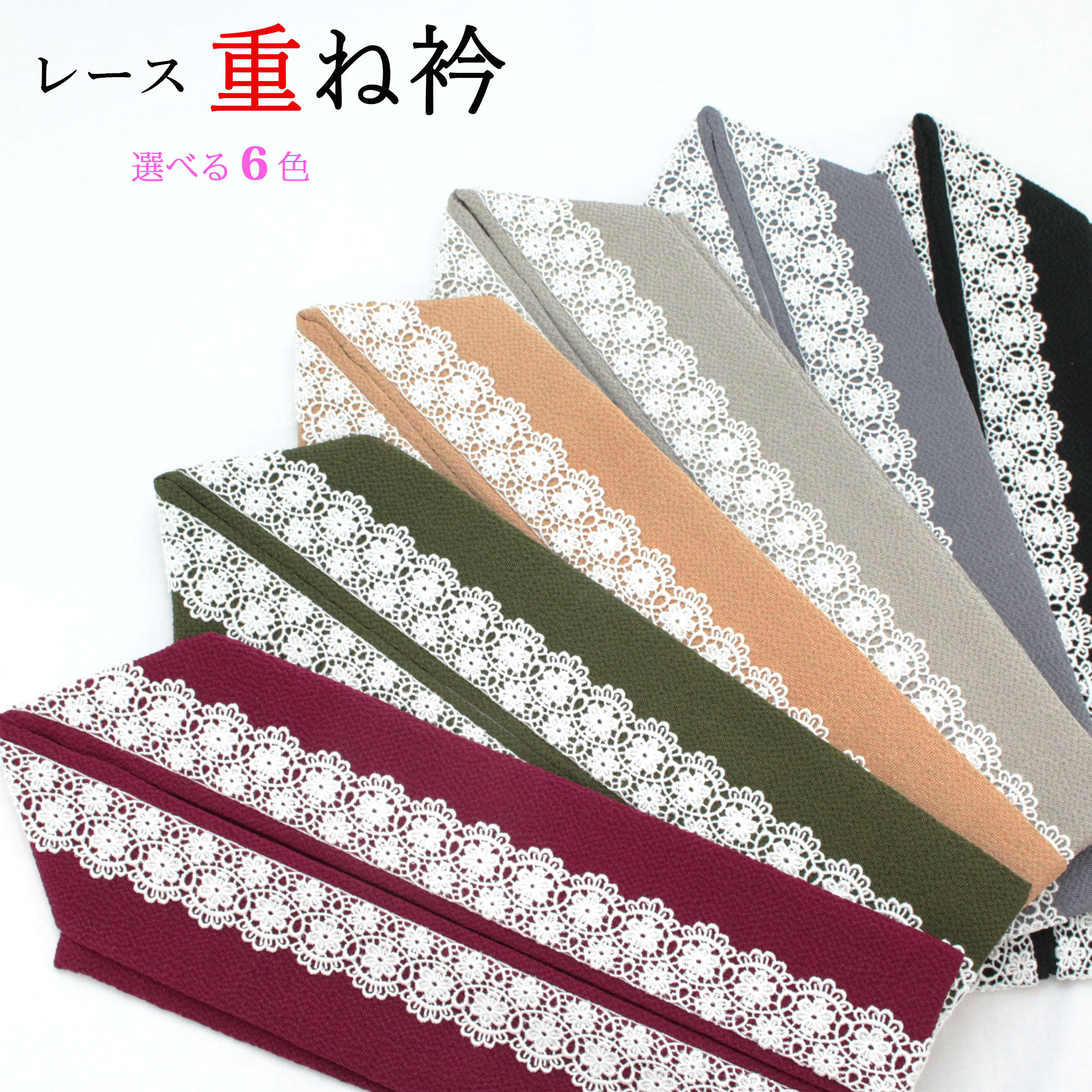 重ね衿 レース ちりめん 振袖 成人式 結婚式 伊達衿 重ね襟 晴れ着 着物 和装 卒業式 披露宴 アンティーク くすみカラー お洒落 豪華 6色