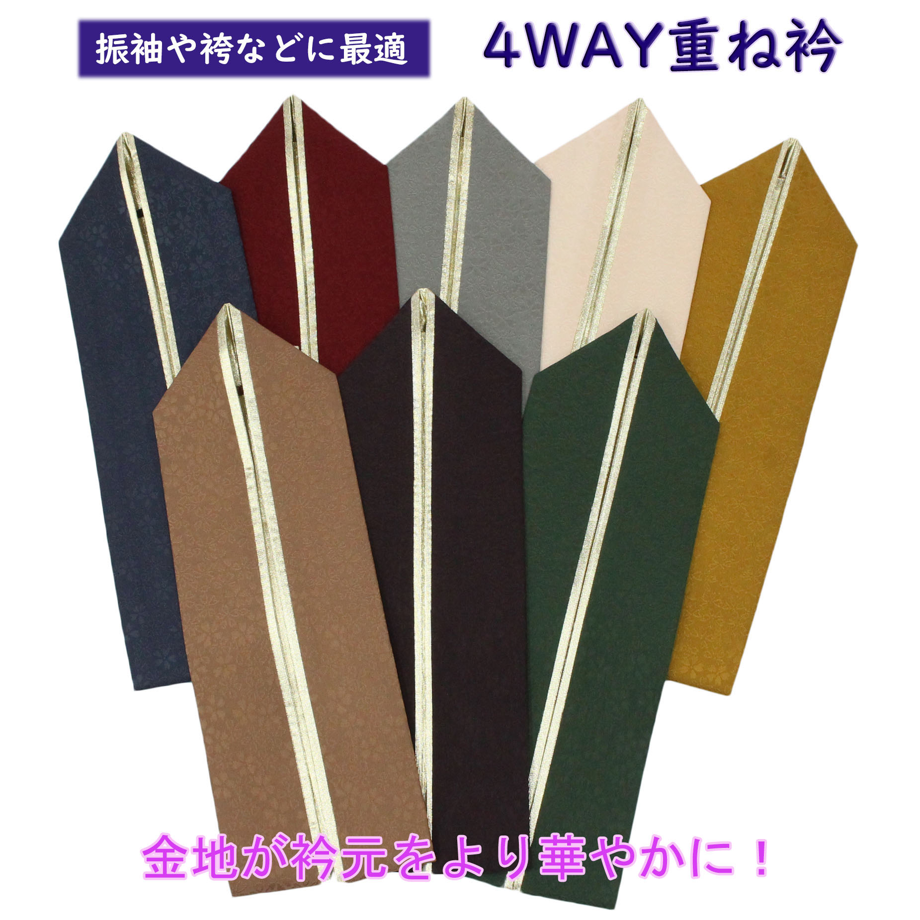 重ね襟 振袖 重ね衿 袴 伊達襟 成人式 卒業式 正絹 2色 2重 4way 金 ゴールド 紺 えんじ グレー アイボリー 金茶 茶色 こげ茶色 深緑 ダークカラー くすみカラー