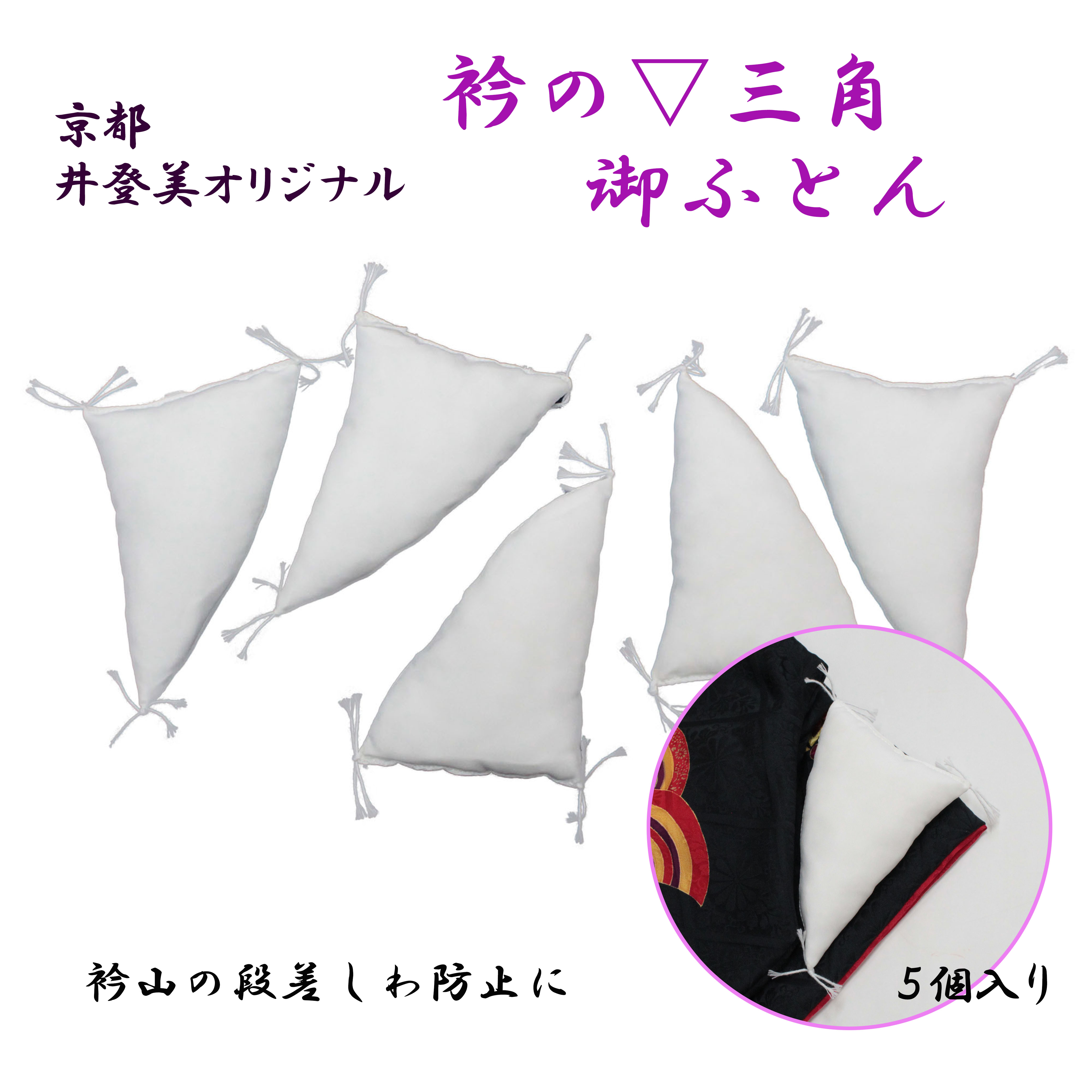 着物の衿しわ防止 着物のしわ防止 たたみシワ 衿の三角御ふとん 着物のまくら 井登美 5個入り 白 着物便利小物 和装便利小物