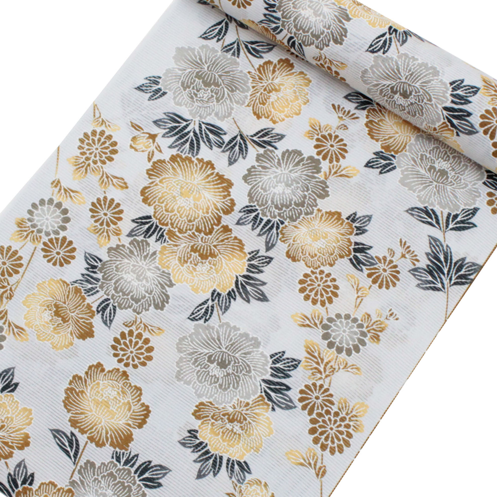 浴衣 反物 生地 レディース 教材用 日本製 絽 綿絽 横絽 ゆかた グレー 花柄 牡丹 菊 綿 20代 30代 40代 50代 お洒落 誂え 仕立て