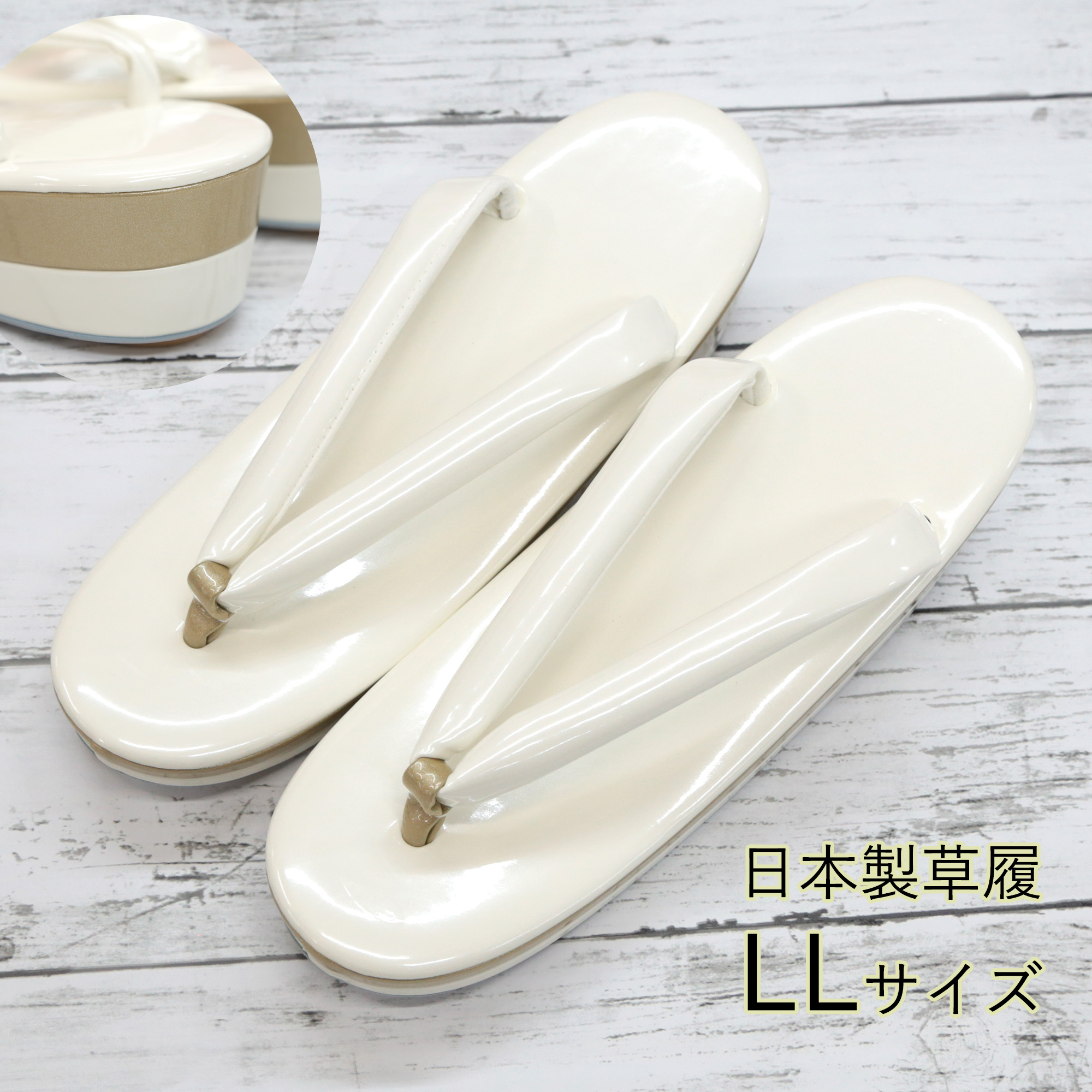 日本製 草履 単品 レディース 白 ホワイト 金 バイカラー エナメル LLサイズ 大きいサイズ 和服 着物 礼装 セミフォーマル カジュアル ぞうり
