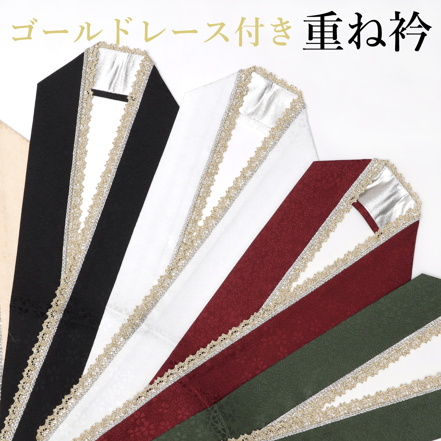 重ね襟 レース 振袖用 重ね衿 袴 伊達襟 黒 白 赤 青 ピンク グレー アイボリー 藤色 4way 成人式 卒業式 結婚式 披露宴 浴衣 小紋 着物 和装 華やか
