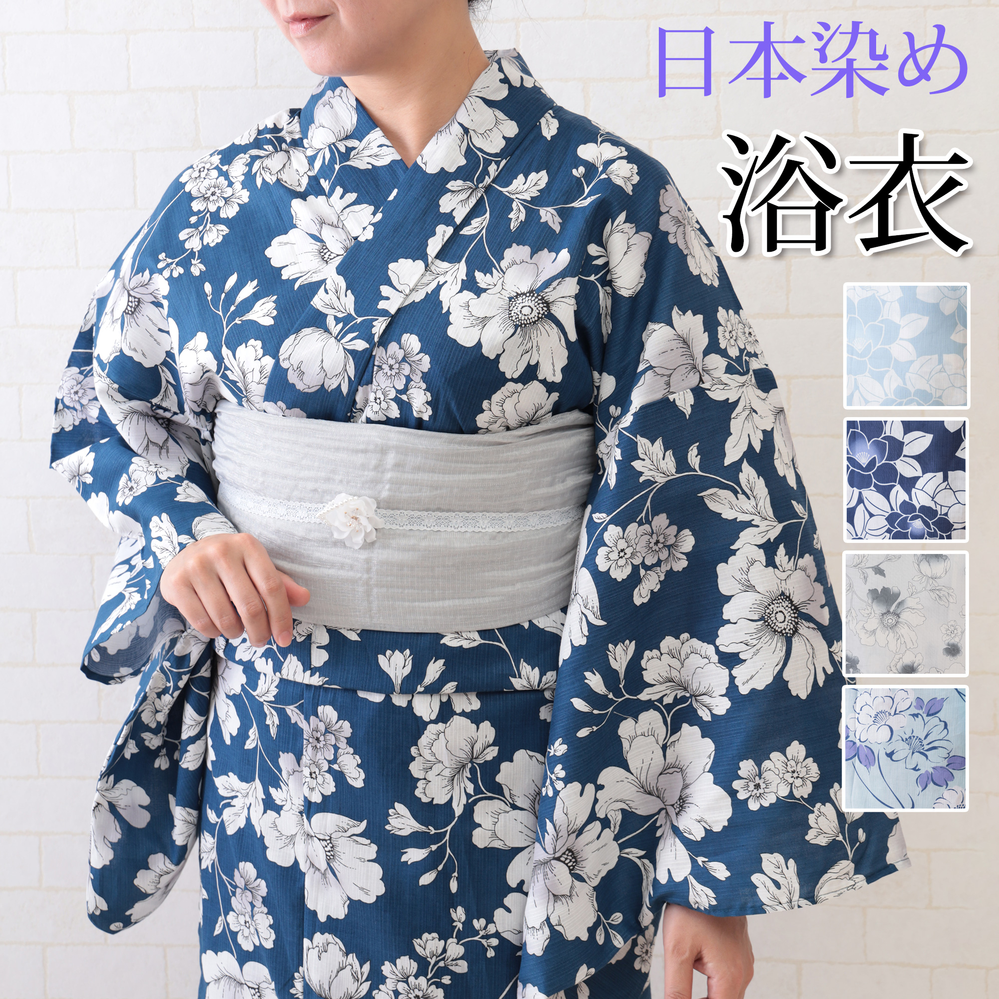 浴衣 レディース 単品 大人 20代 30代 40代 50代 仕立て上がり 出来上がり 仕立て済み ゆかた 紺色 水色 白 ネイビー 女性用 婦人 女物 モダン シック お洒落