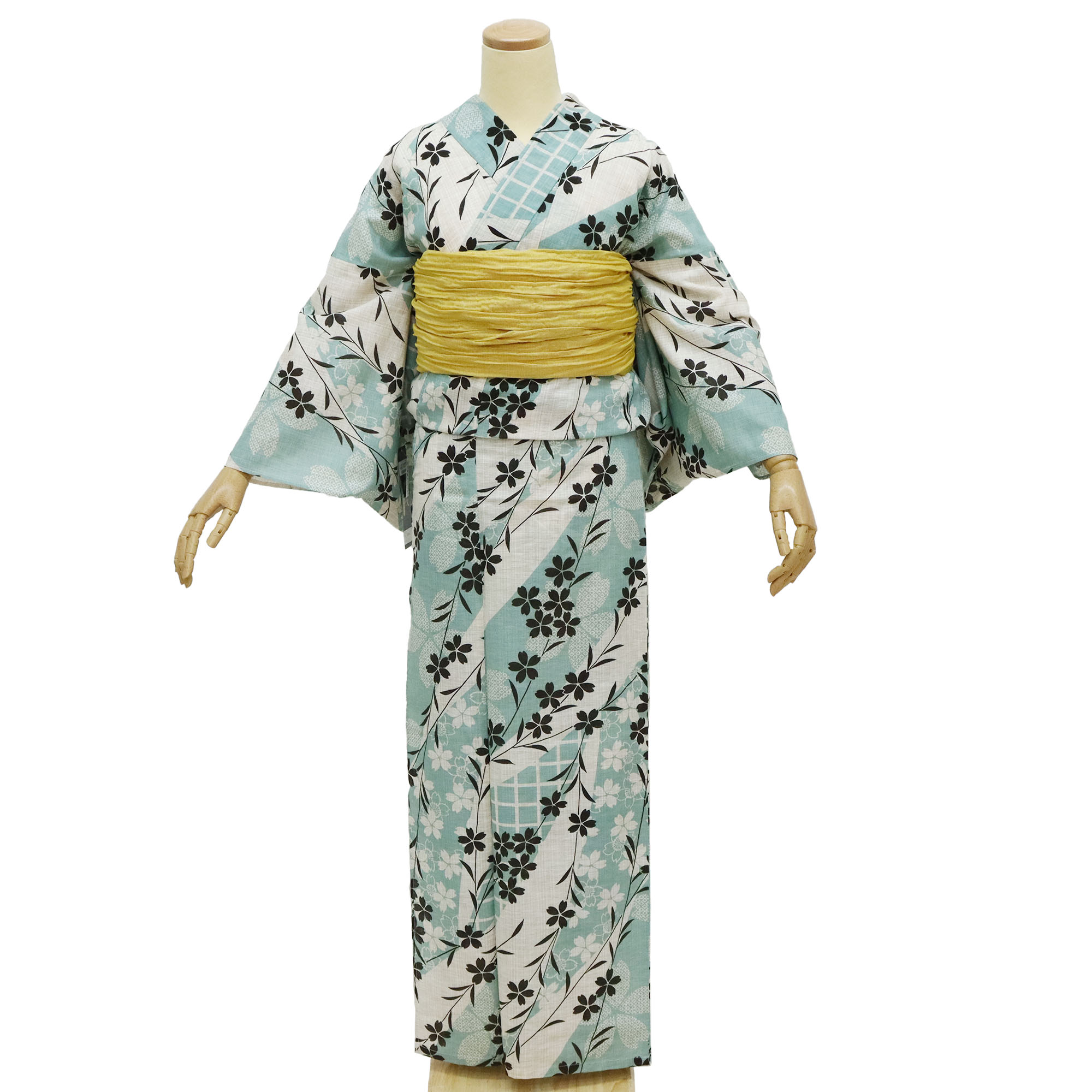 浴衣 レディース 仕立上がり ブランド浴衣 プレタ浴衣 夢千代 大人 女性用 女物 ゆかた 白 生成り 水色 ベージュ 撫子 花 格子 綿 綿麻 シンプル 母の日