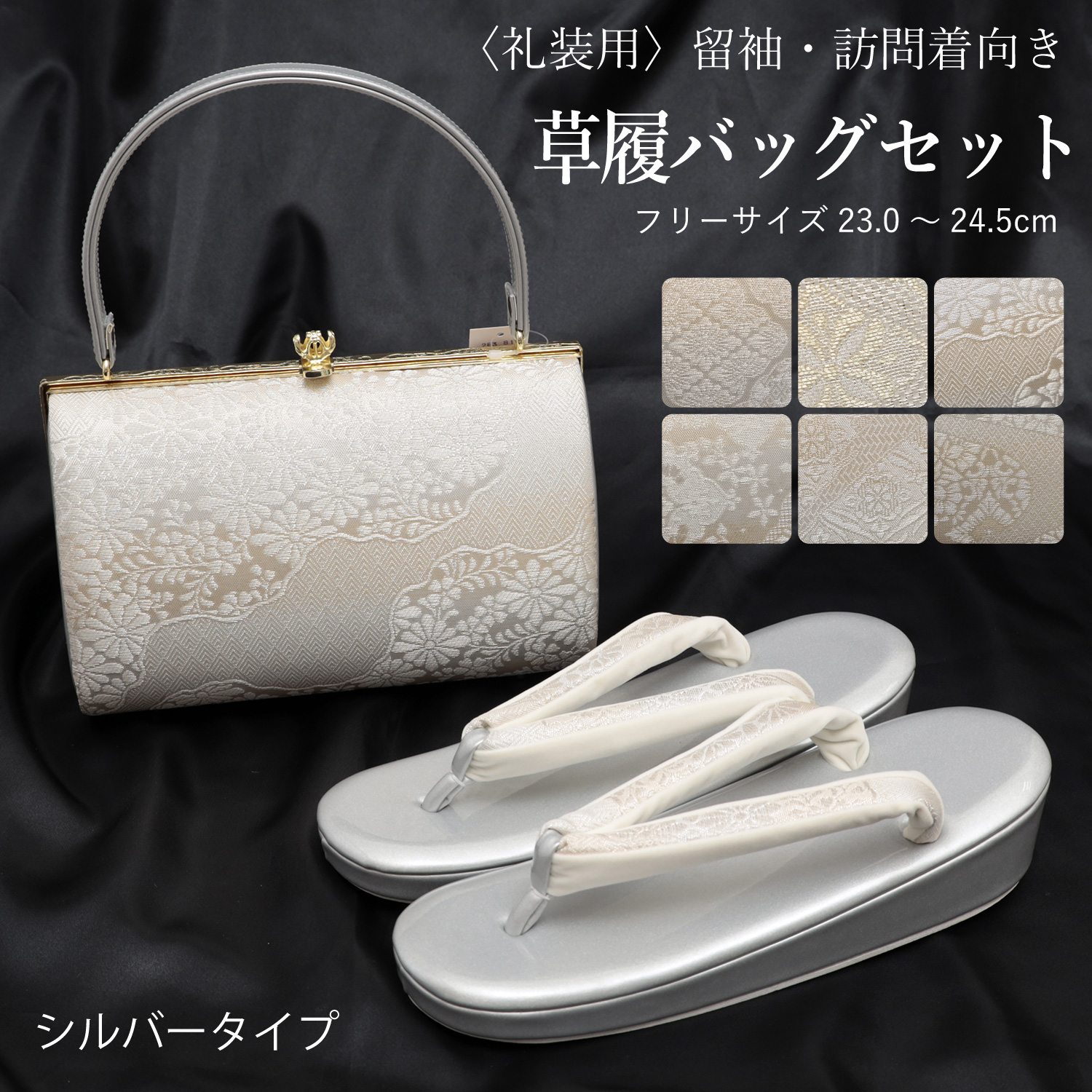 草履バッグセット 留袖 訪問着 フォーマル 草履 バッグ レディース 女性用 銀 シルバー フリーサイズ 痛くない