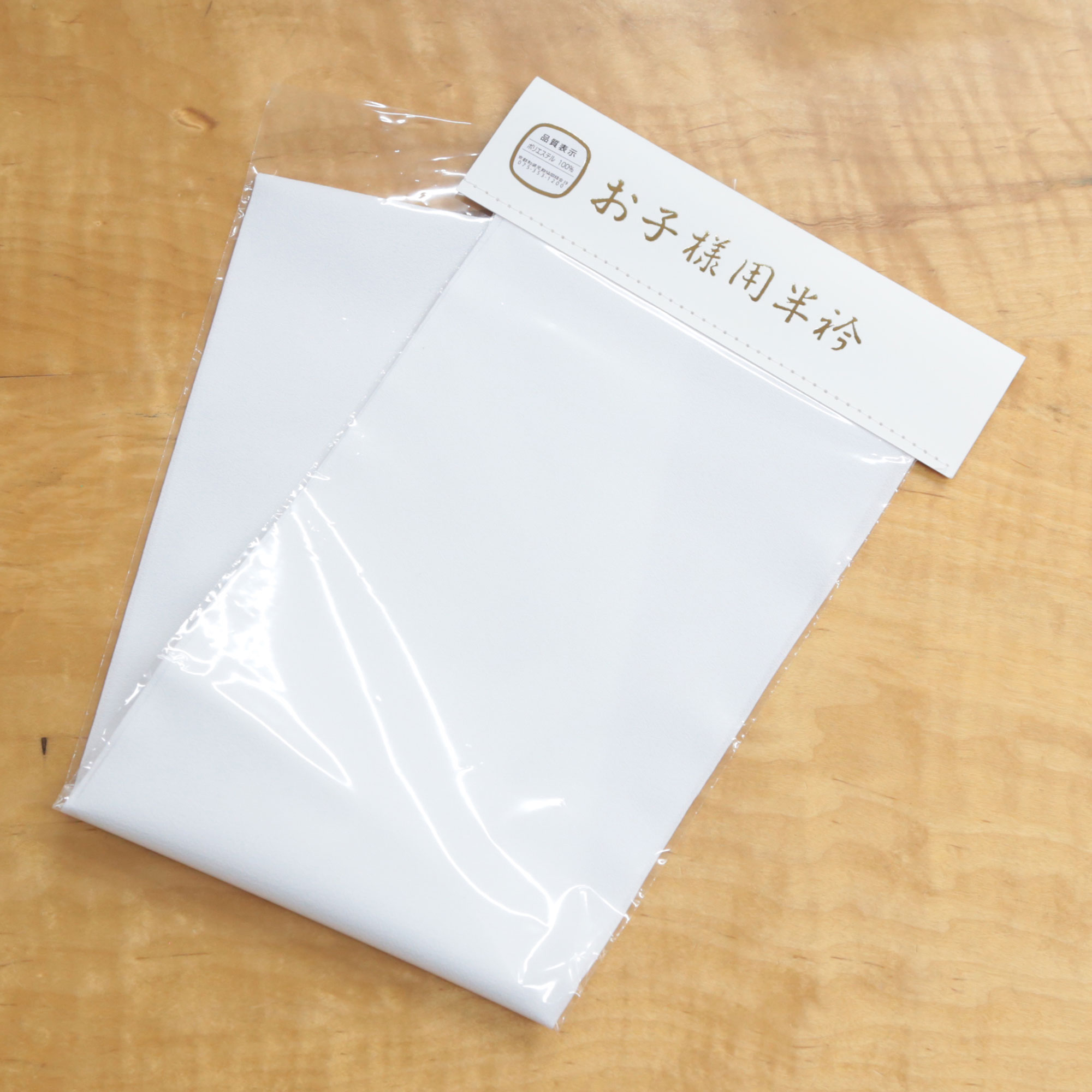 お子様用の長襦袢の衿に縫い付ける白無地半衿です。主に男の子向きです。お宮参りの初着(産着)を3歳七五三用にサイズ直しをして着せてあげる場合に、産着の長襦袢に縫い付ける半衿として最適です。5歳の羽織袴の長襦袢にも使えます。ポリエステル素材ですので万一汚れてしまってもご家庭で手洗いができます。