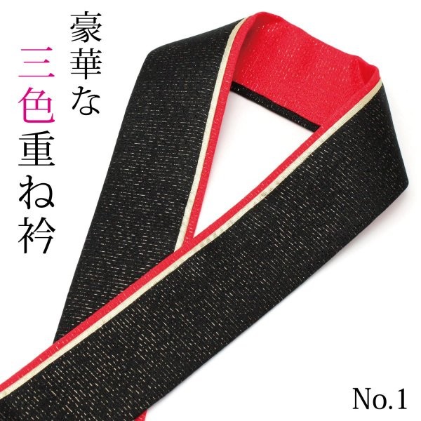 重ね襟 振袖 袴 重ね衿 伊達襟 色合わせ 3重 三重 三色 リバーシブル 赤/金/黒 No.1 成人式 卒業式