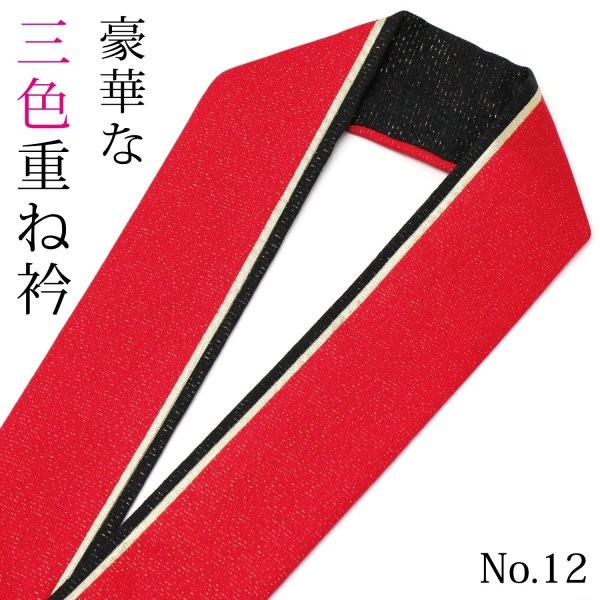 重ね襟 振袖 袴 重ね衿 伊達襟 色合わせ 3重 三重 三色 リバーシブル 赤/金/黒 No.12 成人式 卒業式