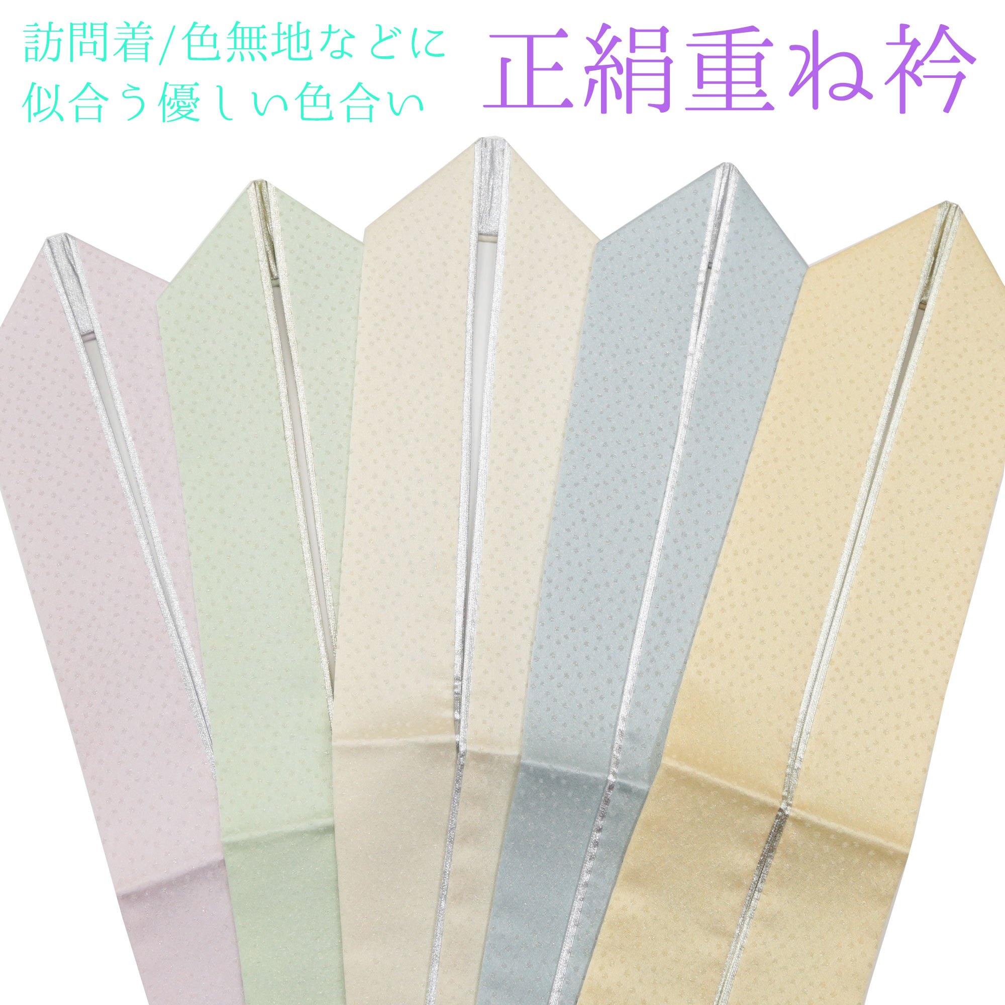 重ね衿 訪問着用 フォーマル 礼装向き 伊達襟 重ね襟 付け襟 淡い色 優しい色 黄色 緑 水色 ピンク アイボリー 金 銀 2色 リバーシブル