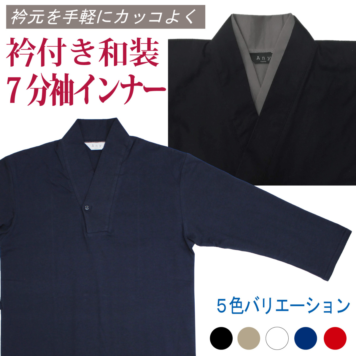 半襦袢 メンズ 長袖 七分袖 着物用 作務衣用 浴衣用 インナー Tシャツ ロング 襟付き 和装下着 肌襦袢 肌着 Vネック 男性用 紳士 綿100% 夏冬兼用 色付き