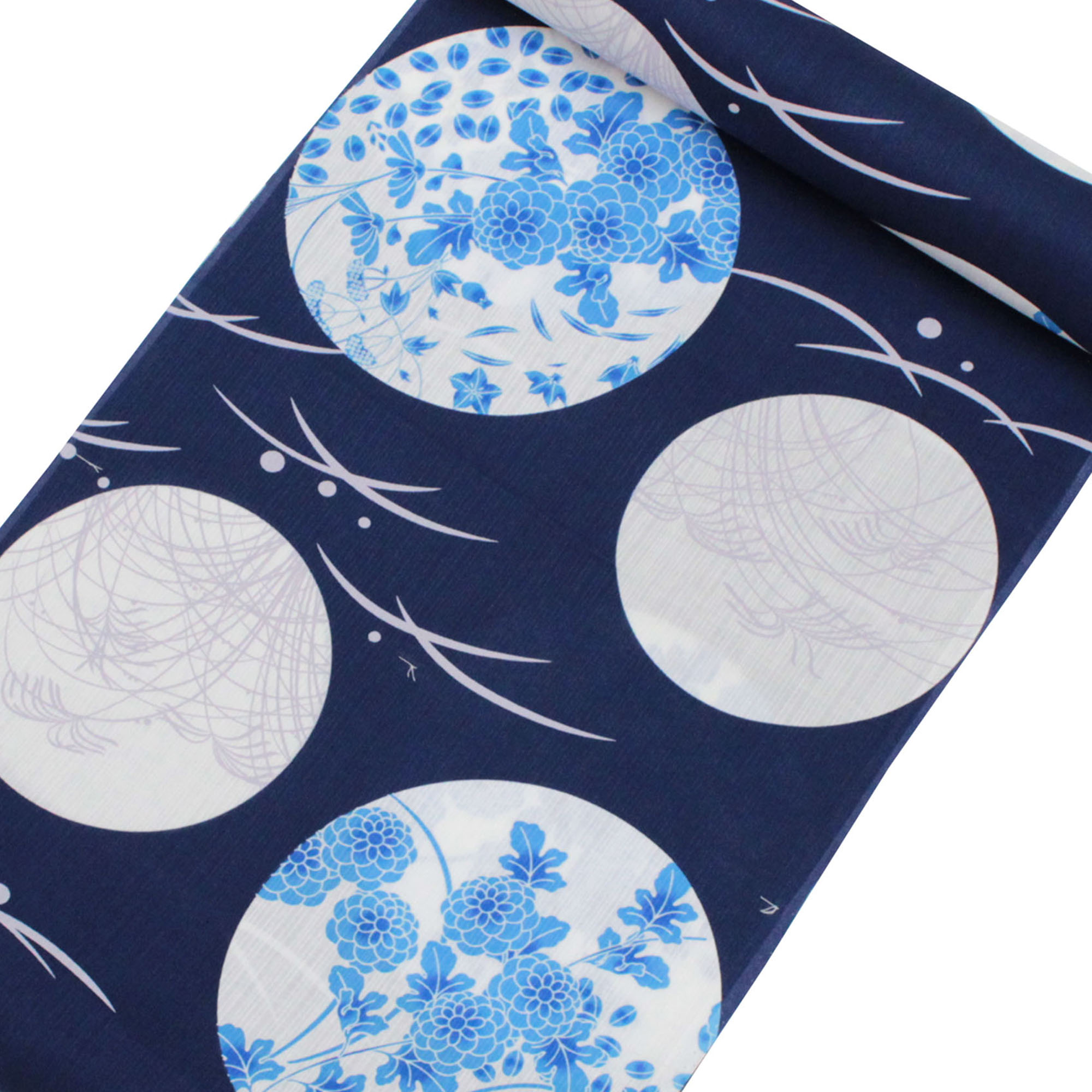 日本製 浴衣 反物 生地 教材用 レディース 紺 ネイビー 青 花 つゆしば 女性用 ゆかた 綿100 20代 30代 40代 50代 オーダーメイド yukata