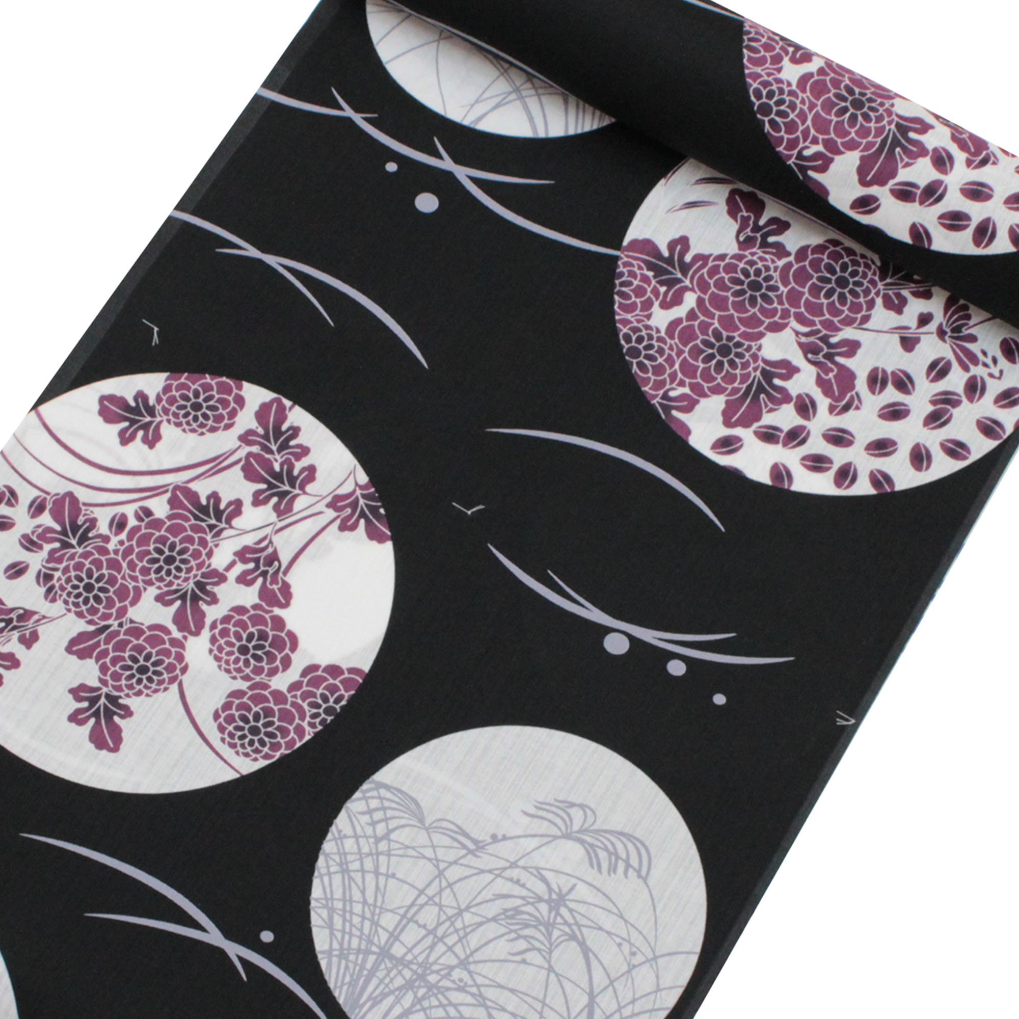 浴衣 反物 生地 日本製 教材用 レディース 黒 ブラック 紫 花 つゆしば ゆかた 綿 20代 30代 40代 50代 誂え 仕立て オーダーメイド yukata