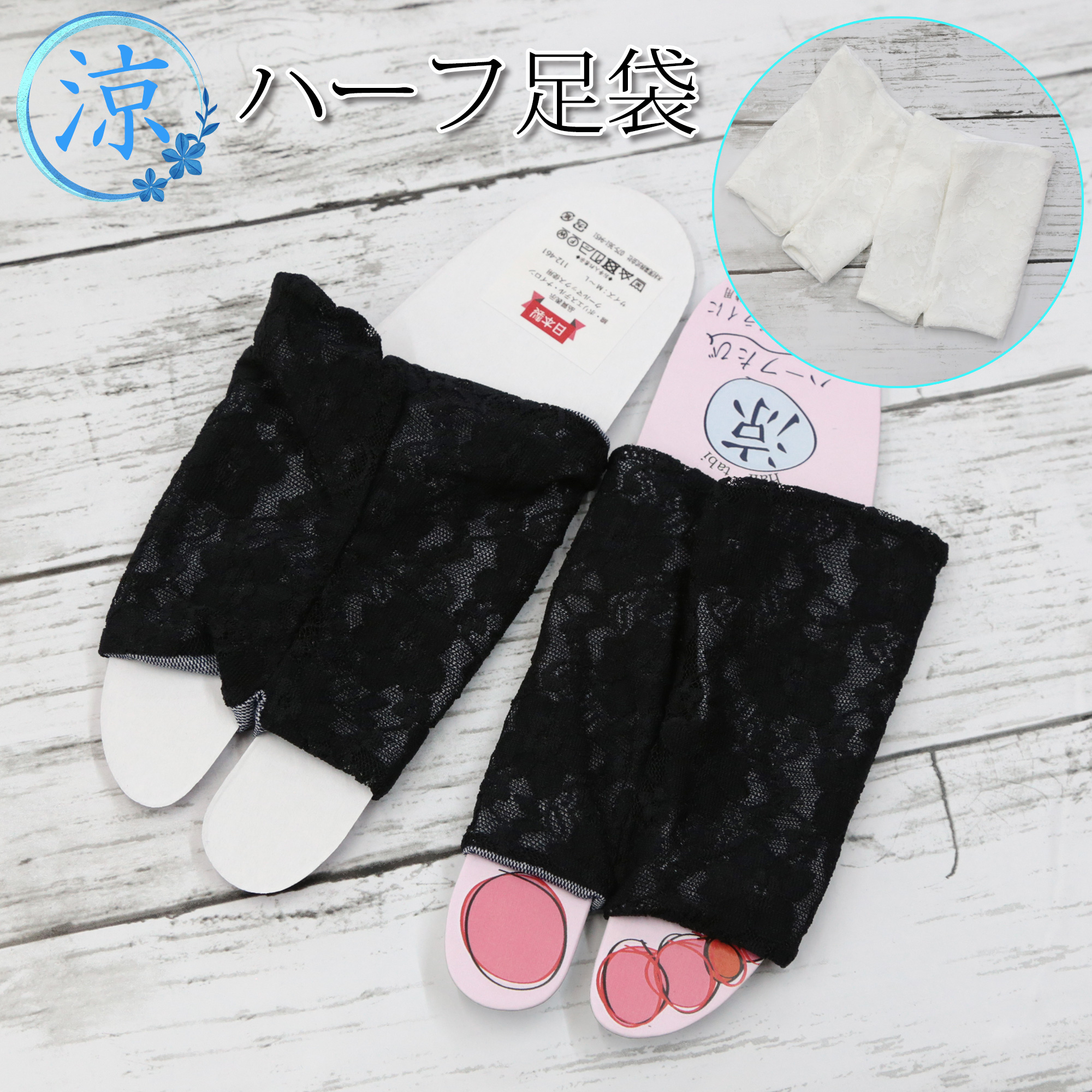 ハーフ足袋 レディース 足袋 レース 夏用 涼しい 単衣 クールマックス ストレッチ 伸びる足袋 コハゼ無し 女性用 足袋ソックス 白 黒 日本製