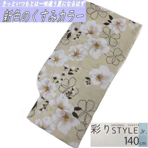 ゆかた サイズ140 こども くすみ色 くすみカラー 芍薬 新色 アースカラー 浴衣 女の子 アイボリー 11才から12才用 140cm 女児 キッズ 子供ゆかた 大正浪漫