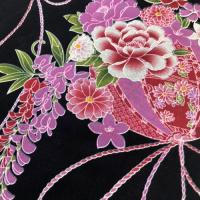 ゆかた 2点セット こども 110cm 黒地 兵児帯 浴衣 女の子 ジュニアサイズ 5才から6才用 子供 ジュニア キッズ 鞠柄 藤の花柄 へこ帯 110cm ブラック