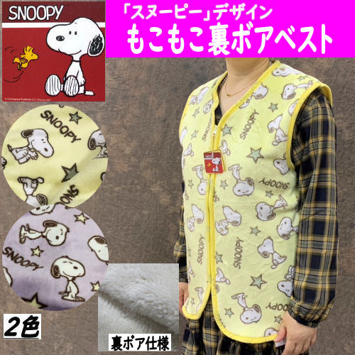 もこもこベスト スヌーピー 裏ボア 前開き 婦人用 半纏 フランネル素材 防寒 ベスト スリーパー 快適 袖なし ポリエステル 部屋着 レディース ピーナッツ snoopy