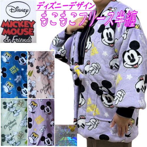 もこもこ半纏 ディズニー 婦人半纏 レディース ミッキー ドナルドダック Disney 半纏 袢天 半天 中綿入り フリース 4色 防寒 袖あり ML どてら 丹前 袢纏 半てん