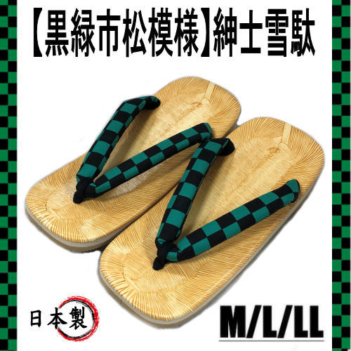 【黒緑市松柄】雪駄 男物 市松 日本製 紳士 黒緑 メンズ M/L/LLサイズ せった セッタ 草履 男物着物 単品 履き物 鬼滅の刃 炭治郎 箱なし