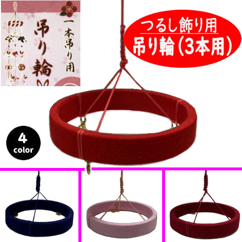 吊り輪 3本用 つるし飾り 12cm つるし紐付き 4色 リング おひな飾り ちりめん細工 吊るし飾り 1本吊り用 つるし輪 下げもん つるし雛 吊り雛 つり輪 クラフト