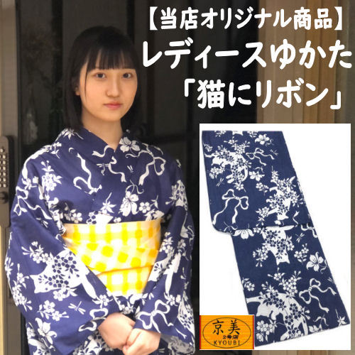浴衣「和遊楽」・お仕立て上がり品・「リボンに猫」